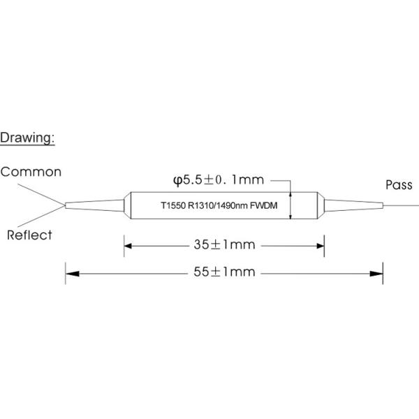 FWDM Filter Steel Tube type TX1550 RX1310/1490nm SC APC connector